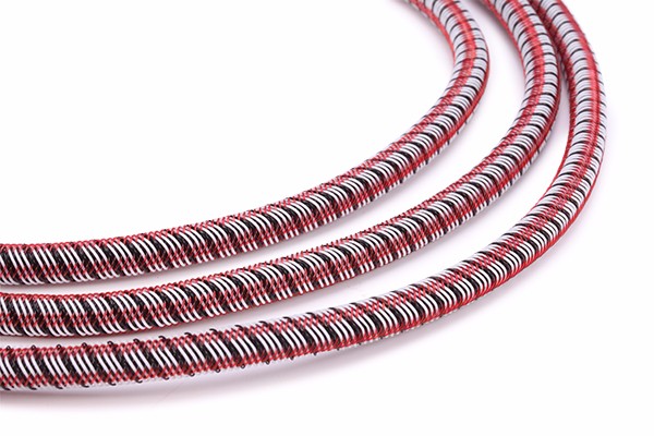 當感應線與液體碳氫燃料接觸時,透過外層紡織網護套滲透至導電橡膠層,使其發生收縮,內部原本螺旋并行排列的芯線均因收縮緊貼導電橡膠層而短路(發生反應后不可逆變,故為一次性產品),引起電流的變化,據電阻和導體長度的比例關系,通過控制器地快速處理,給出具體的泄漏位置。