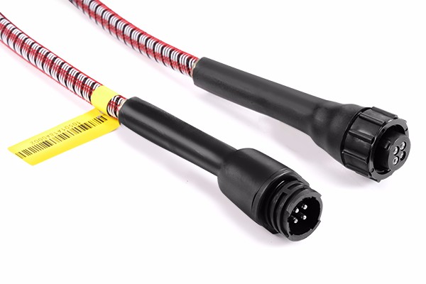 2、感應線在對接過程中,請注意公母接頭針腳順序,對準孔位輕輕插入再順時針鎖緊螺環即可(逆時針方向解鎖)。